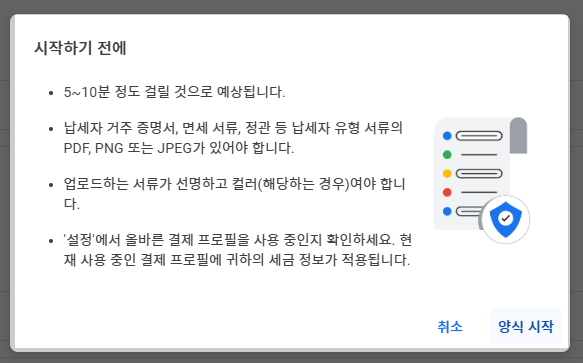 필요한 경우 구글 측에서 추가 서류를 요청할 수 있습니다