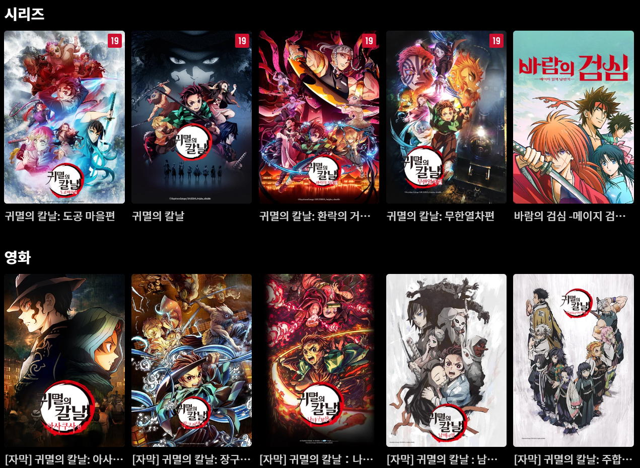 티빙에서 볼 수 있는 귀멸의 칼날