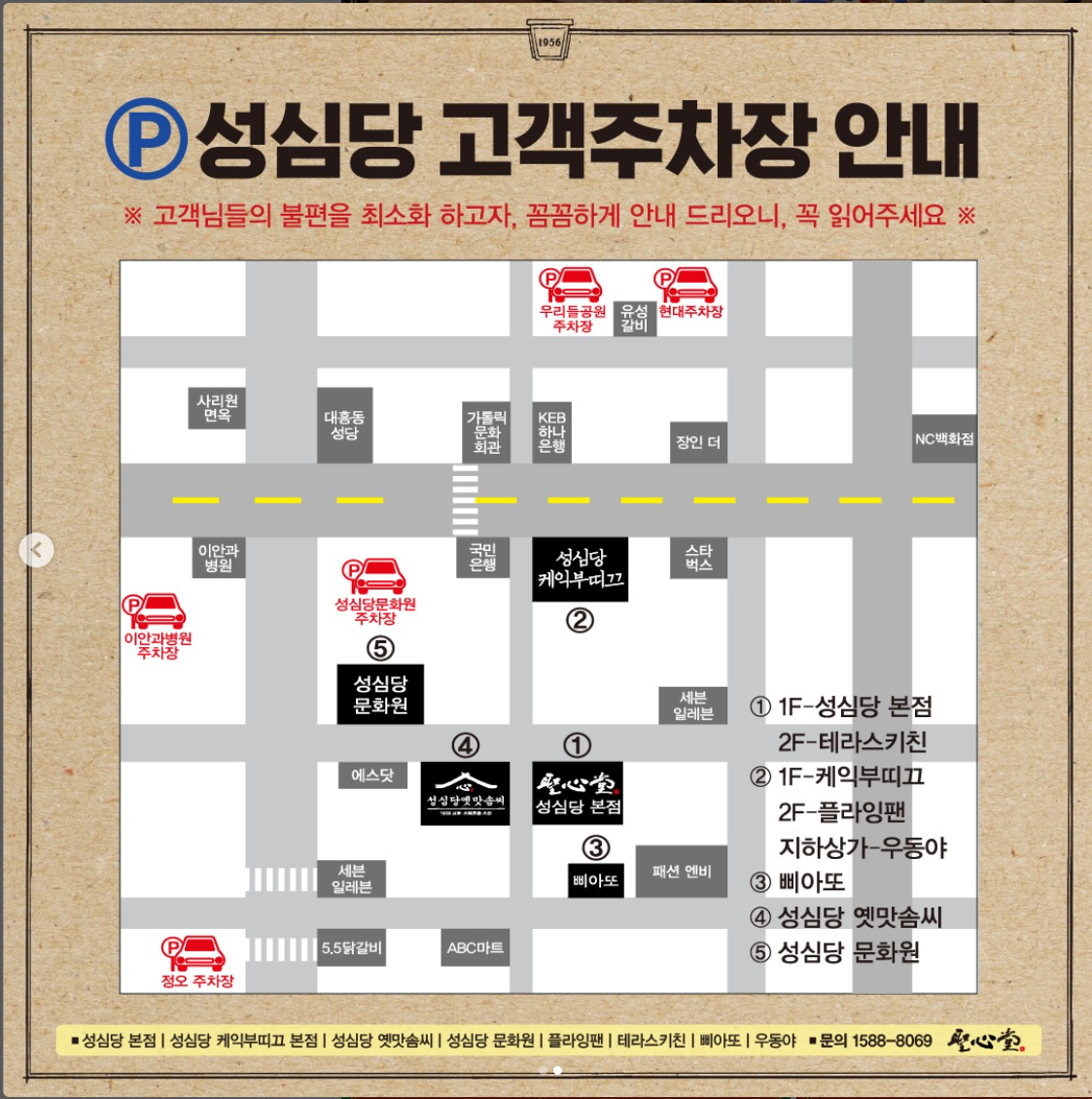 1. 성심 문화원 전용 주차장 : 교통 통제로 이용이 불가합니다.