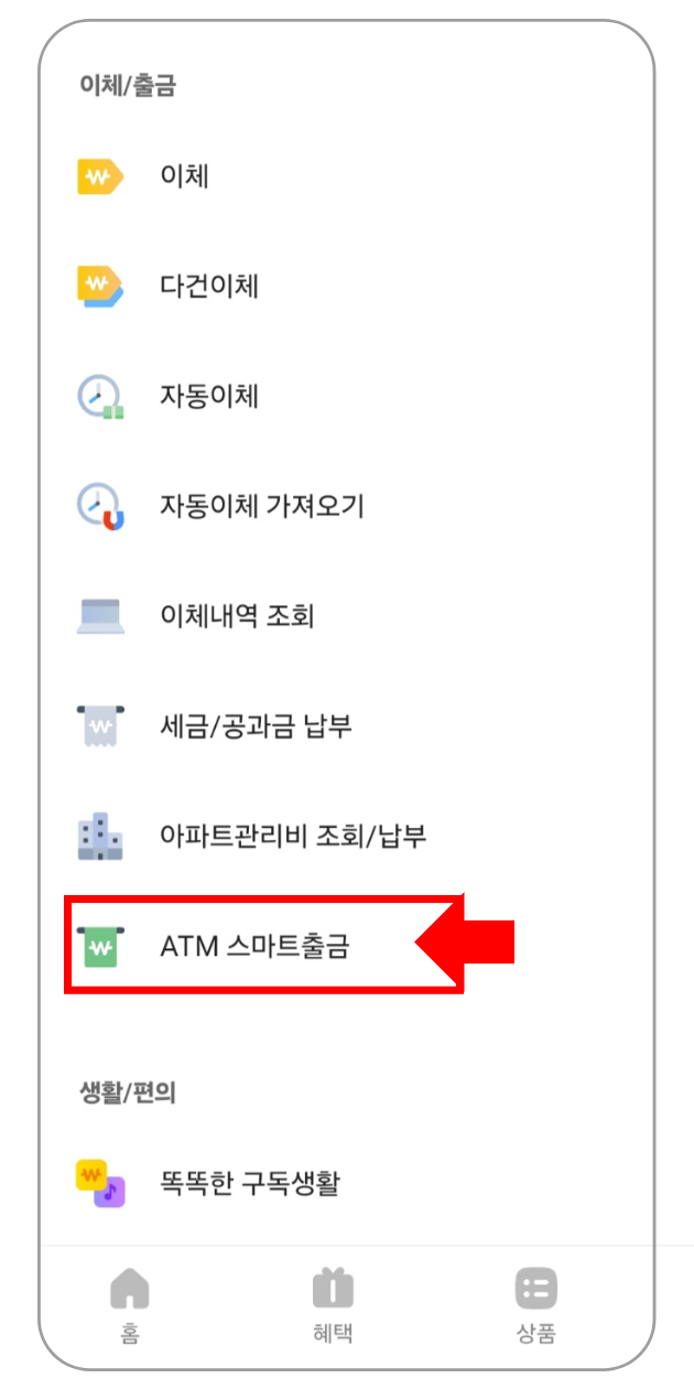 3. 'ATM 스마트 출금'을 눌러줍니다.