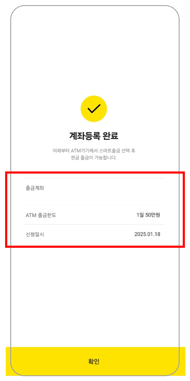 📌 스마트 출금은 하루 최대 50만원 인출이 가능하고, 그 이상을 출금하시려면 체크카드를 이용하시기 바랍니다.