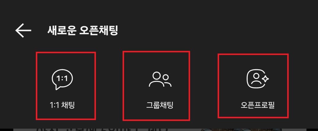 오픈채팅방은 관심사 기반의 새로운 만남이 가능한 채팅 방식이며, 익명 참여 옵션 제공 됩니다.