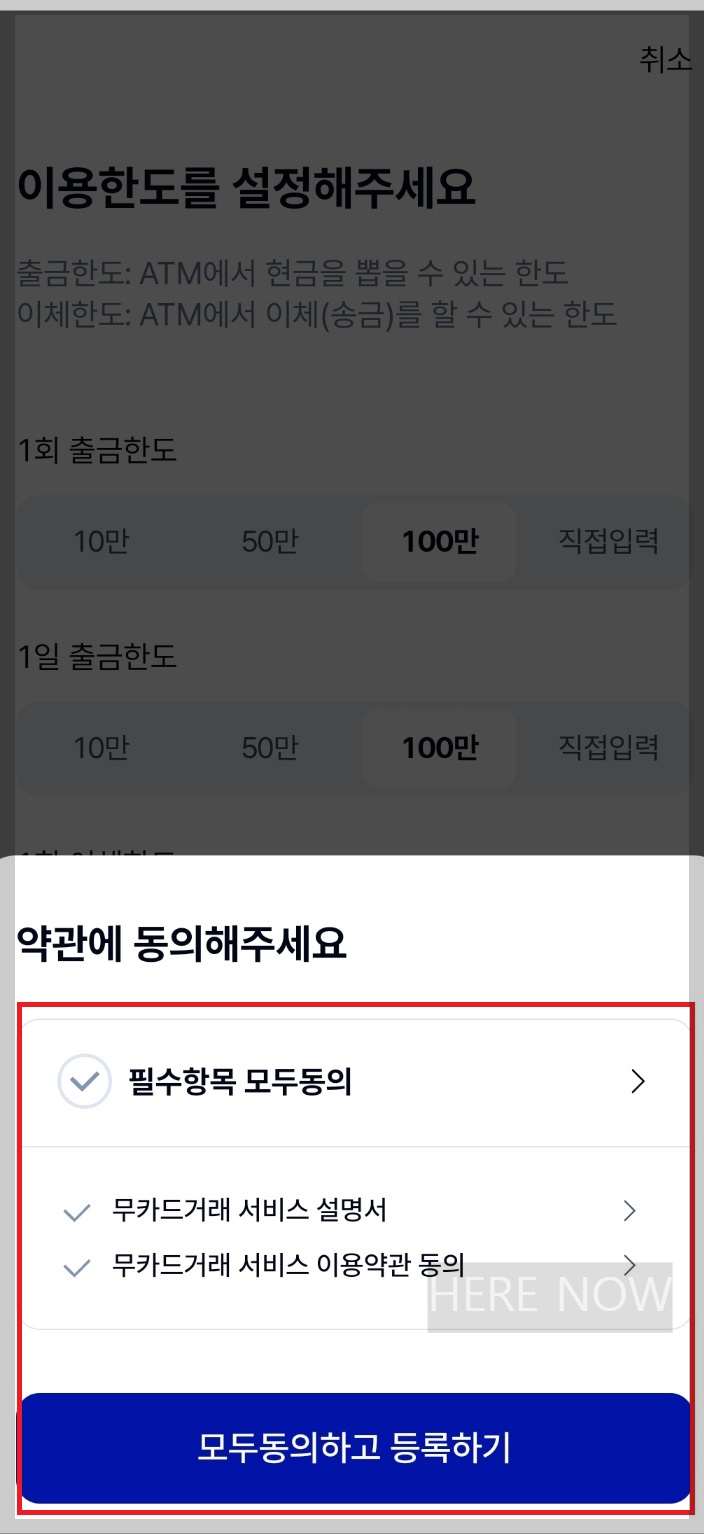 - 무카드거래 서비스 설명서를 꼼꼼히 읽어보시고 약관에 동의해주시면 됩니다.