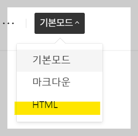 html 수정할때는 작성 중인 화면에서 "기본모드"를 클릭하면 "html"을 클릭하여 편집하면 됩니다.