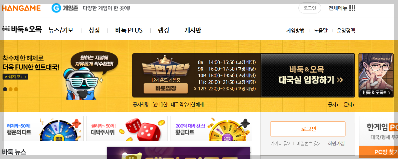 1. 한게임 바둑 공식 웹사이트에 접속합니다.