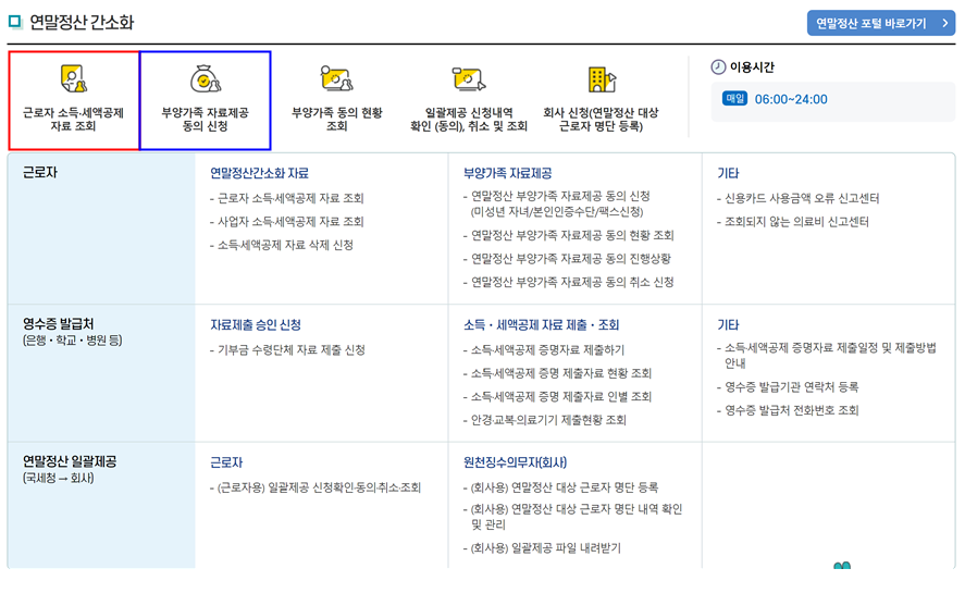 3) 부양가족의 정보가 나오지 않는 경우 파란색 메뉴를 클릭하여 등록하세요.