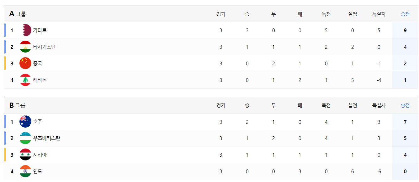 - A조 : 카타르, 중국, 레바논, 타지키스탄