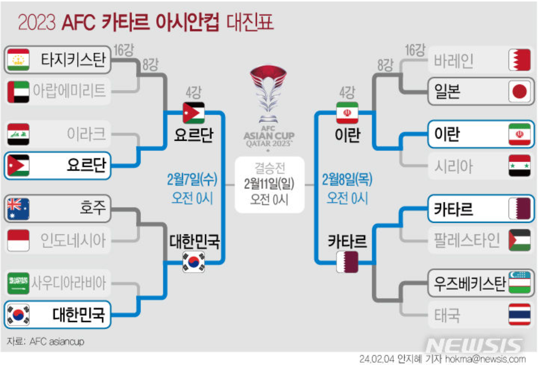 | 2024년 2월 10일 | 요르단 vs 카타르 | 18:00 (11일 00:00) |