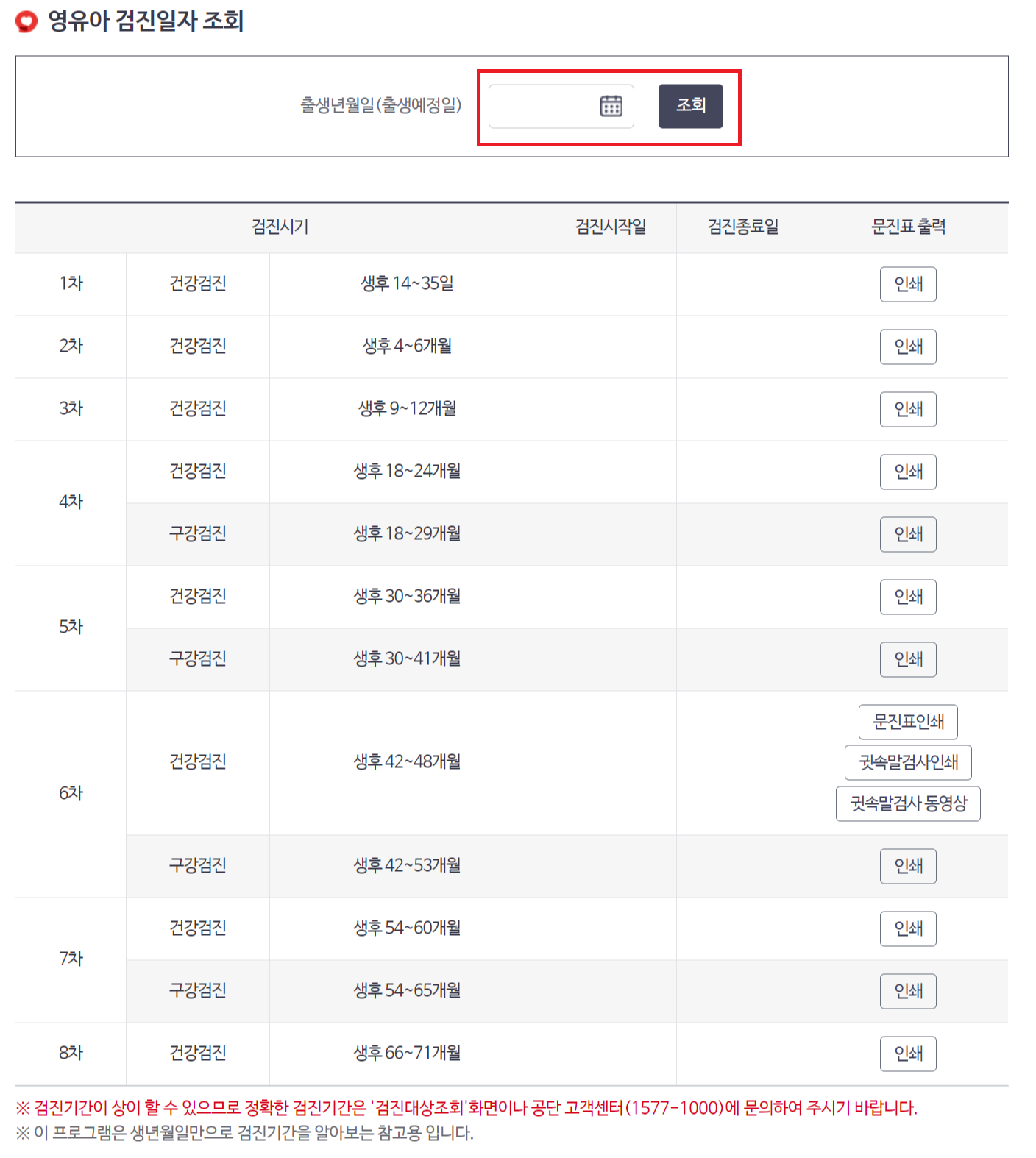 정해진 시기 안에 검진을 받아야만 비용이 발생하지 않는다는 사실을 꼭 기억하셔야 합니다. 예로, 생후 6개월이 지날때까지 1차 검진을 받지 못했다면 검진 비용은 본인이 부담해야 합니다.