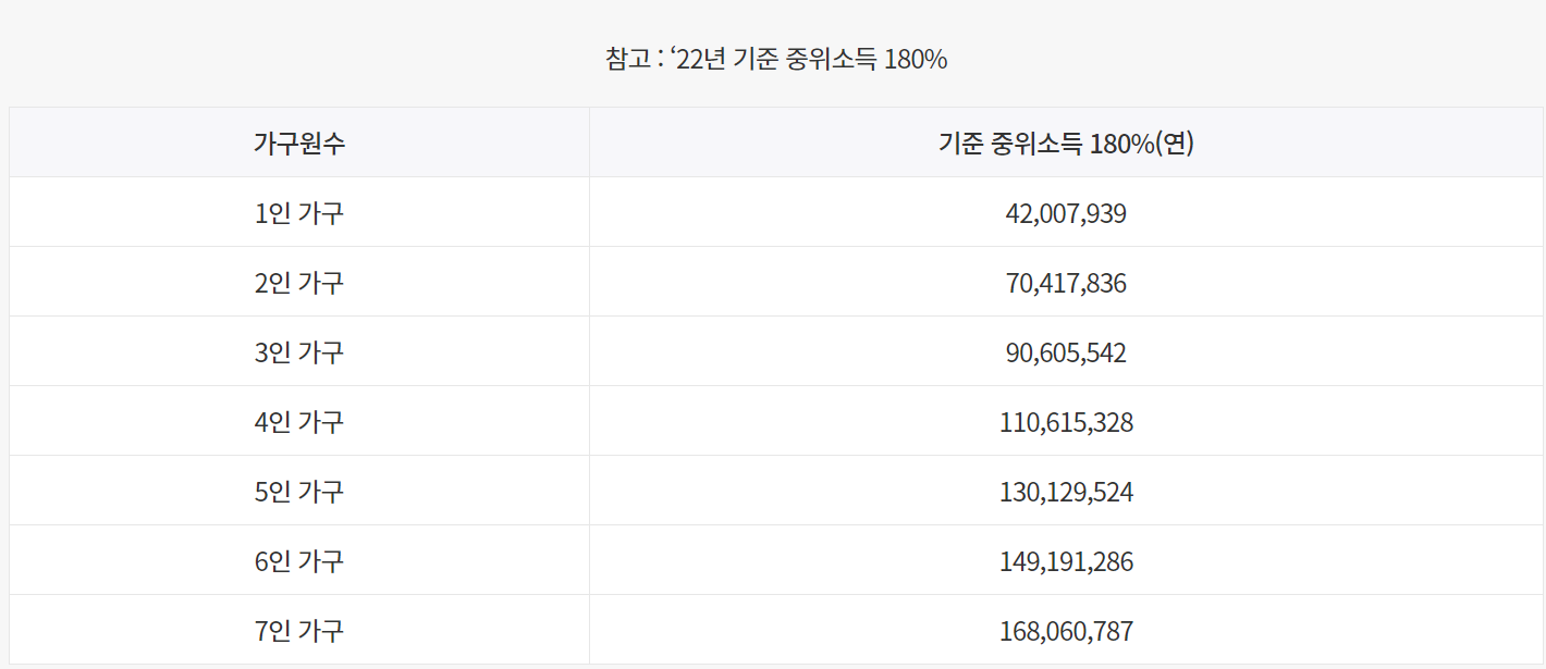 가입 신청자 본인을 포함한 가구원 소득의 합이 보건복지부에서 고시하는 기준 중위소득 180% 이하에 해당하는 자