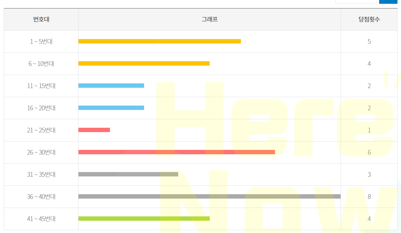 구간대별 당첨번호 출현빈도 확인