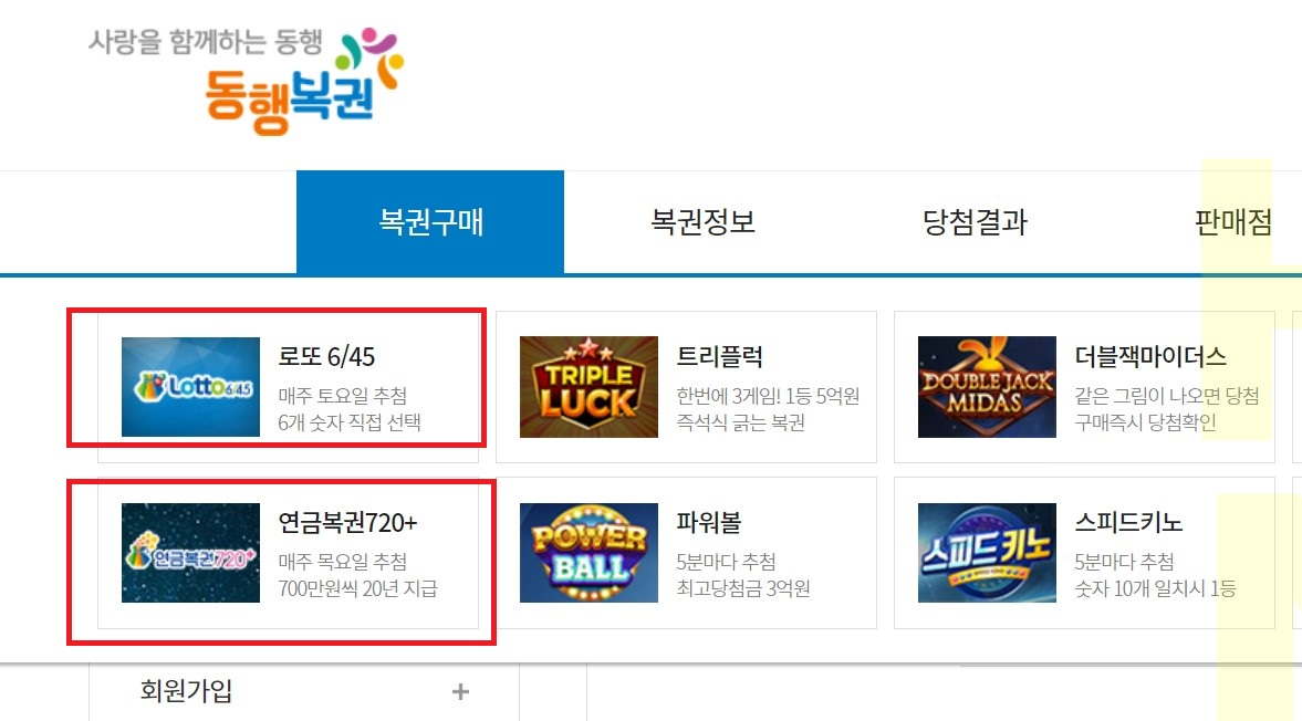 인터넷으로 구배 방법은 동행복권에서 복권구매로 들어가셔서 로그인 후 충전하시면 바로 구매할 수 있습니다. 구매 방법은 동행복권 사이트 내에서 구매하시거나 다음 링크로 들어가시면 구매할 수 있습니다.