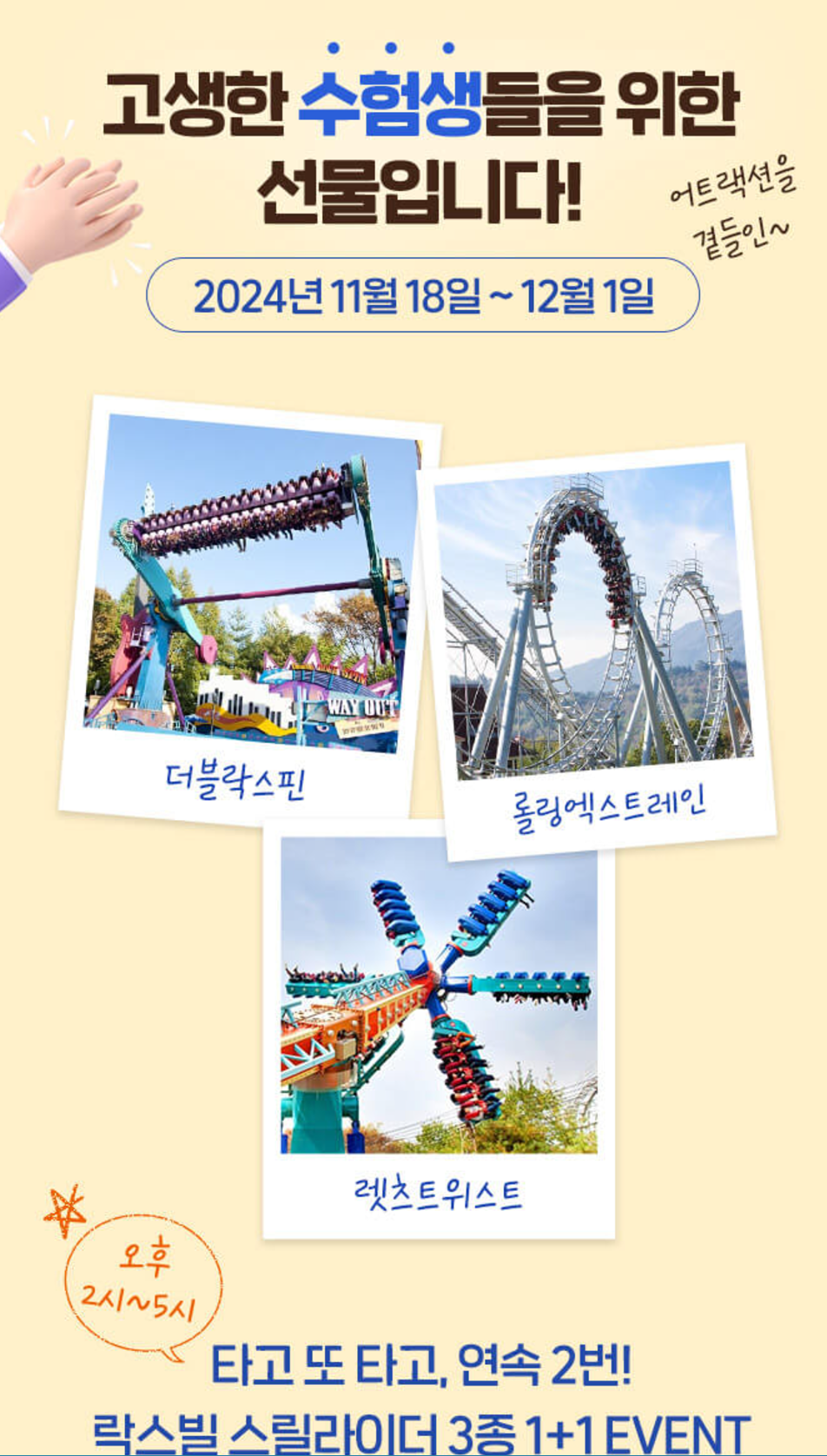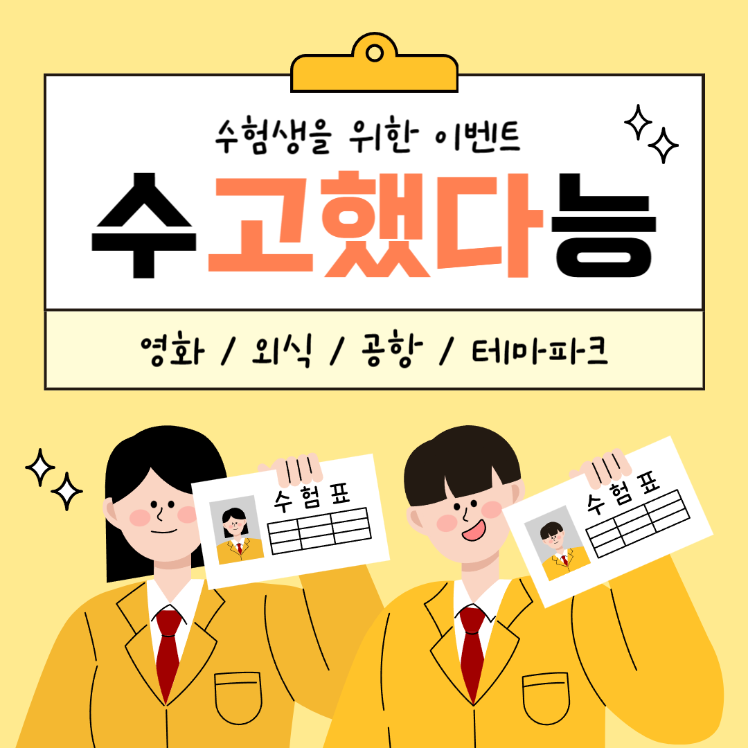 ※ 수험생 이벤트는 다양한 이유로 내용이 변동될 수 있으니, 방문 전에 확인해 보시기 바랍니다!!