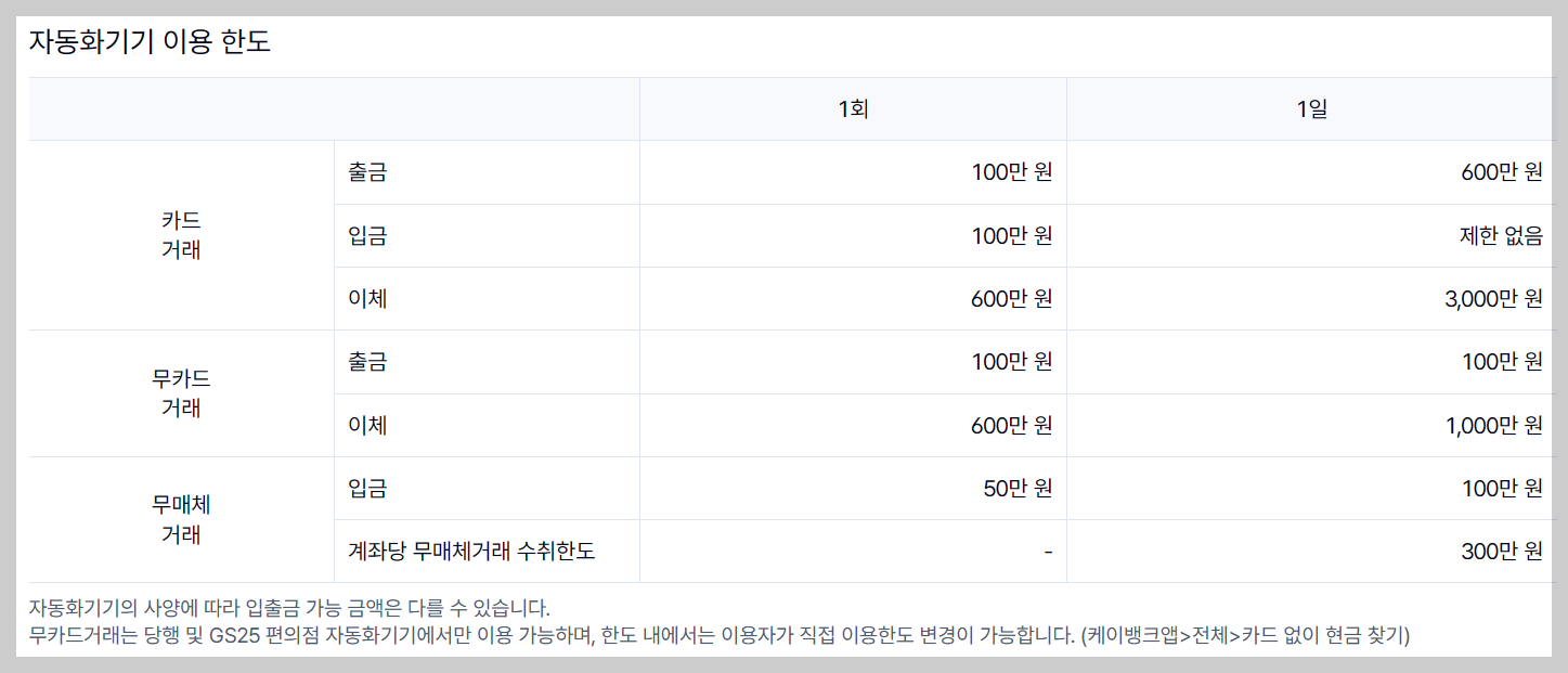 📌 단, 은행 외 VAN 자동화 기기 등은 해당 기기의 인출한도를 따르고 있어 참고 해야 합니다.